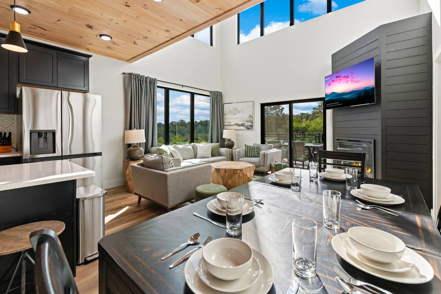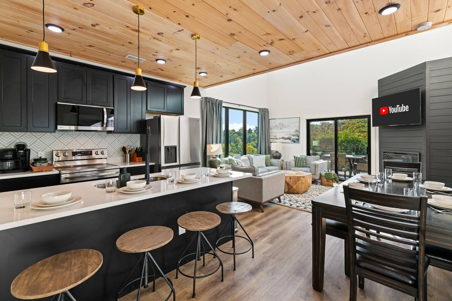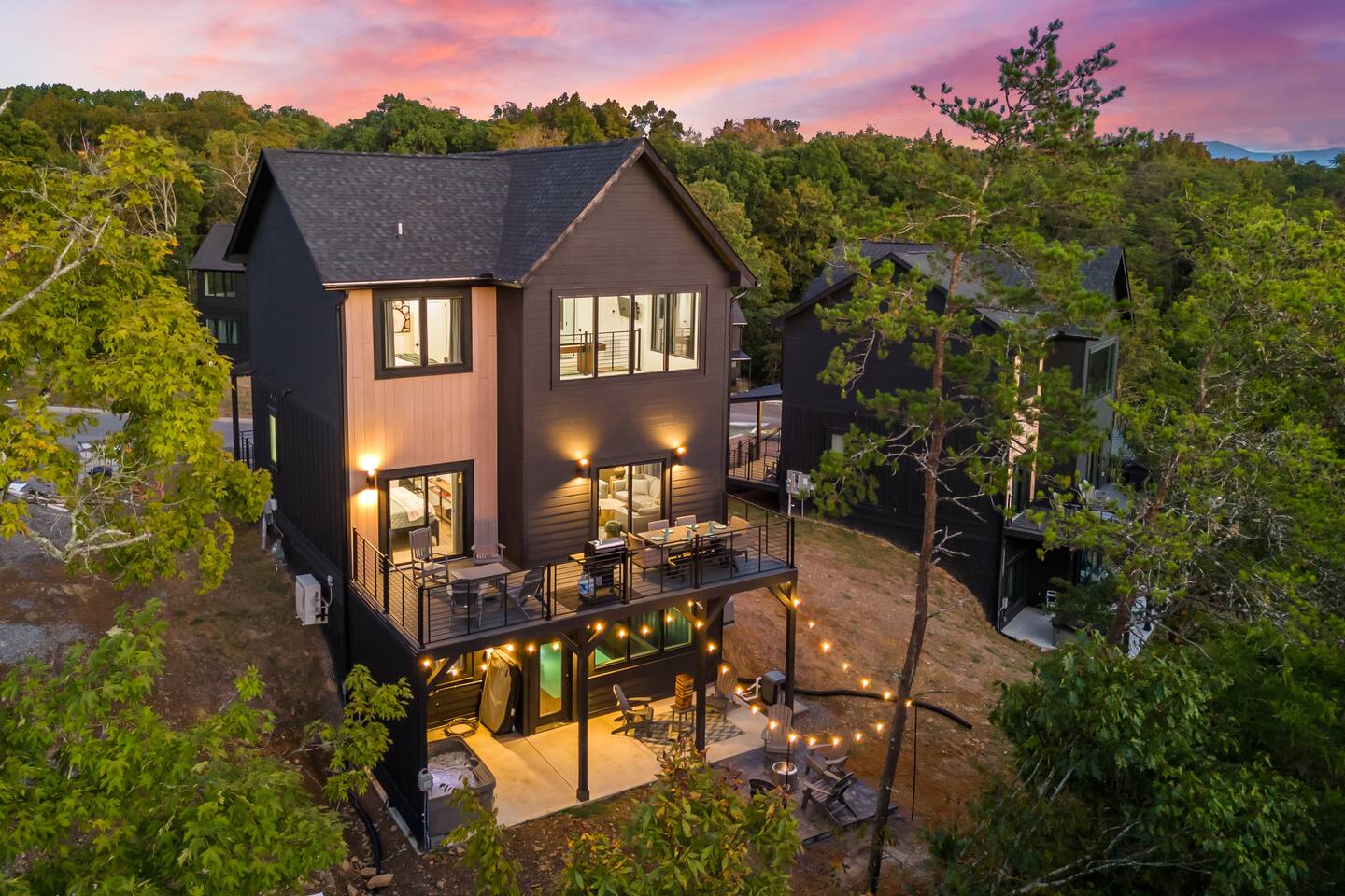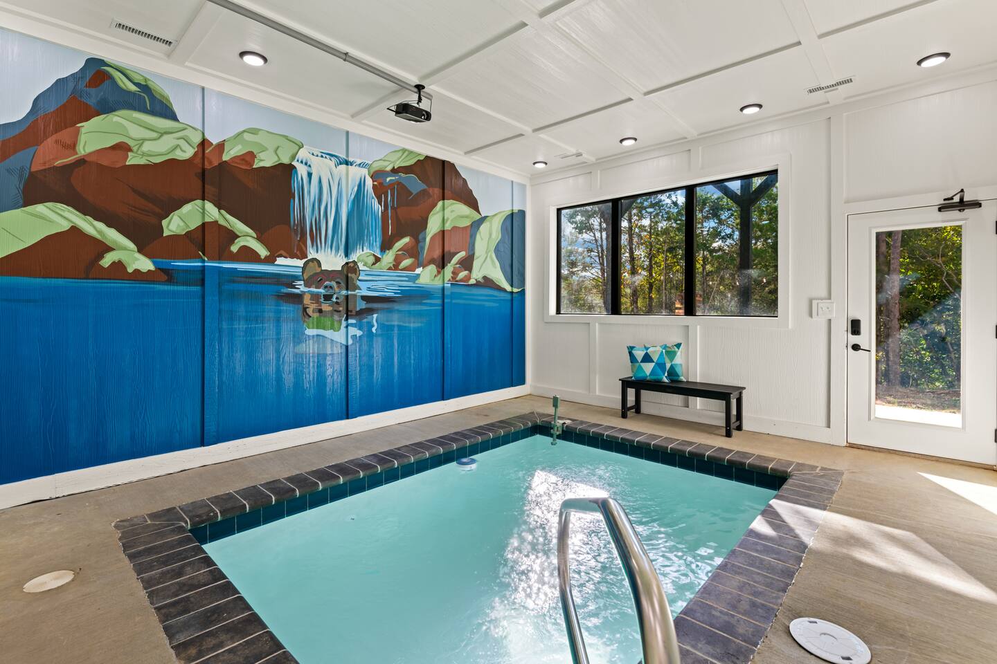 This modern cabin is fun for the whole family! Interested in a swim? A splash in the pool is always fun, but if you want to level it up for your kids- wait until they can have a movie night in the pool! Or maybe you want to relax outdoors? Kick back at the fire pitand tell campfire stories while roasting marshmallows, or take a soak in the hot tub as you enjoy the evening. Or maybe you just want to stay in?For a cozy time inside there is shuffleboard, loads of board games, and an arcade game!