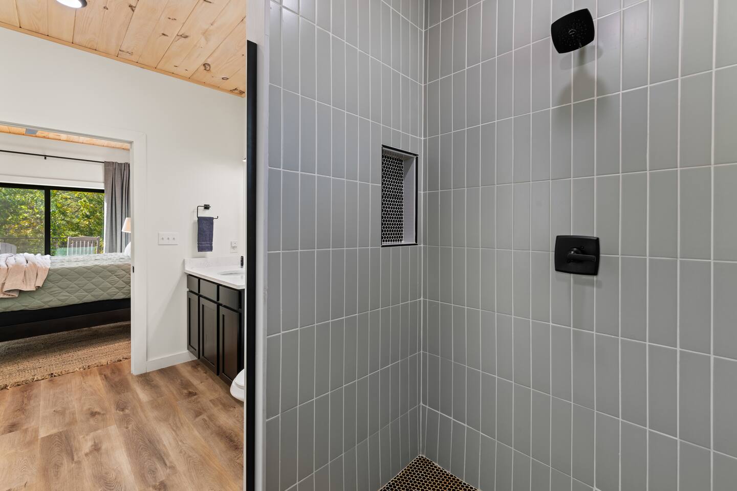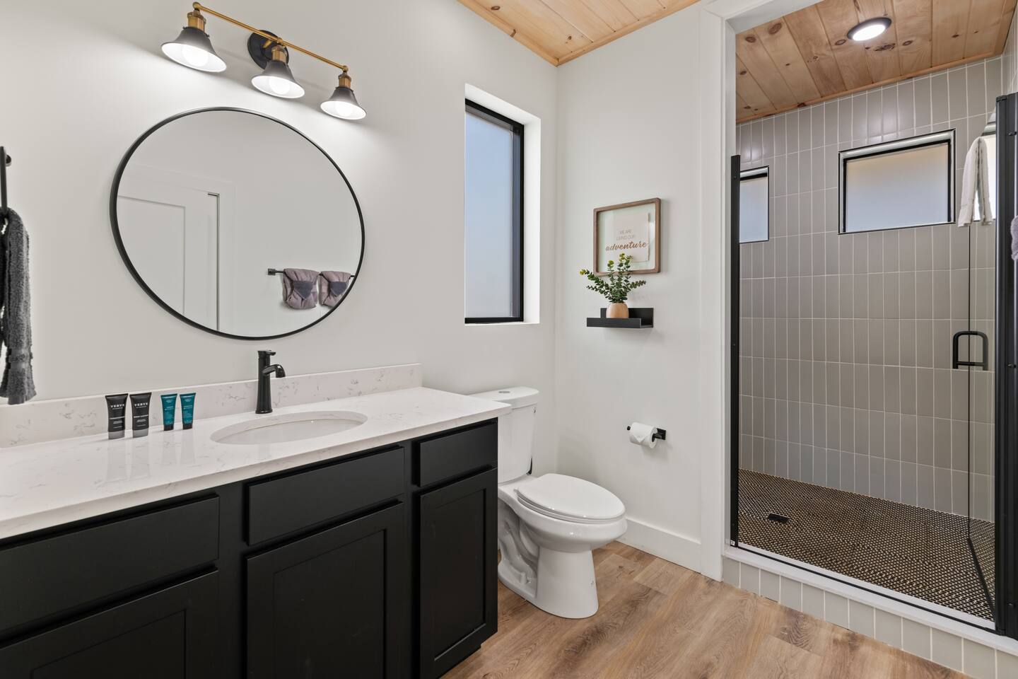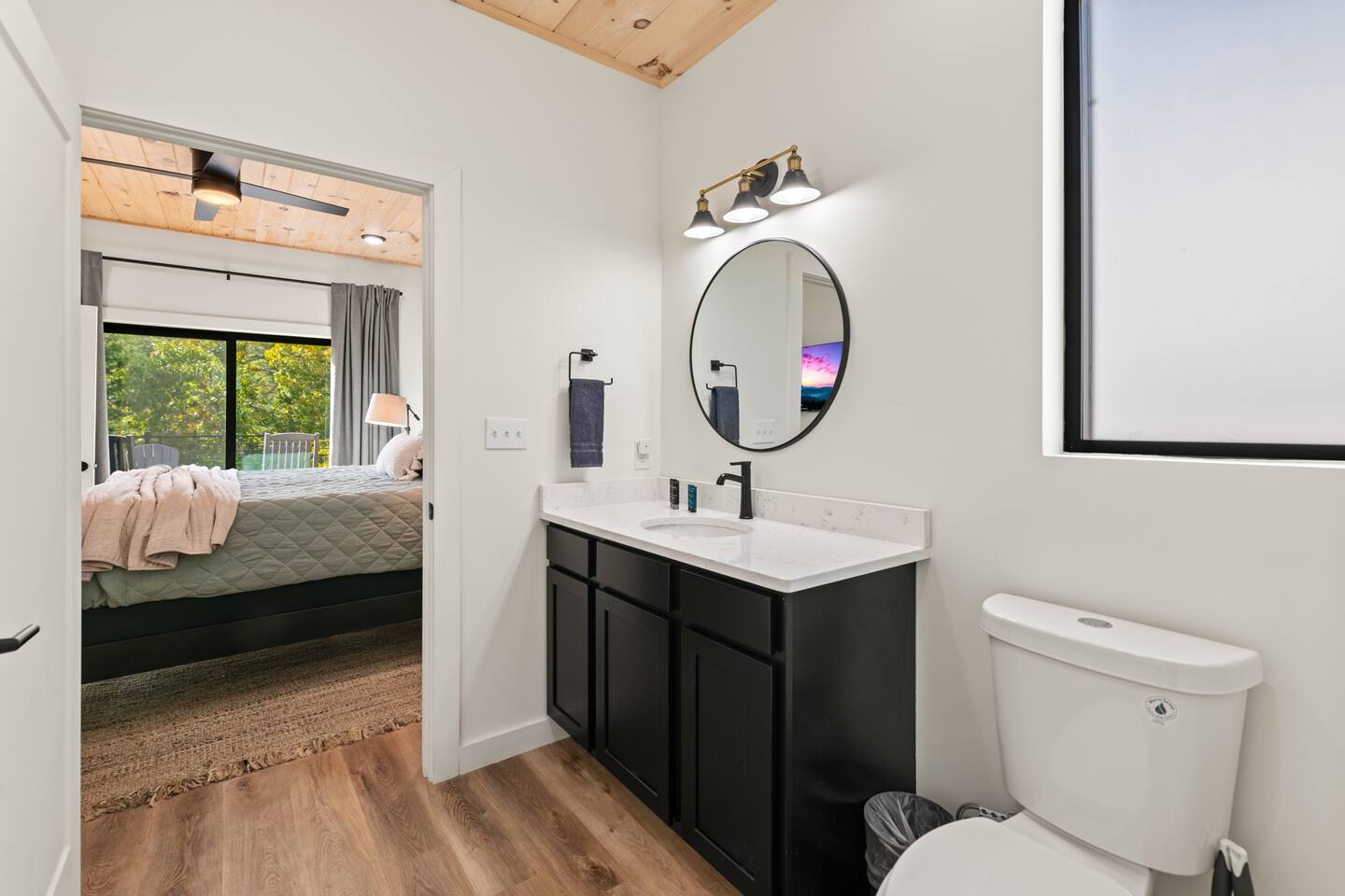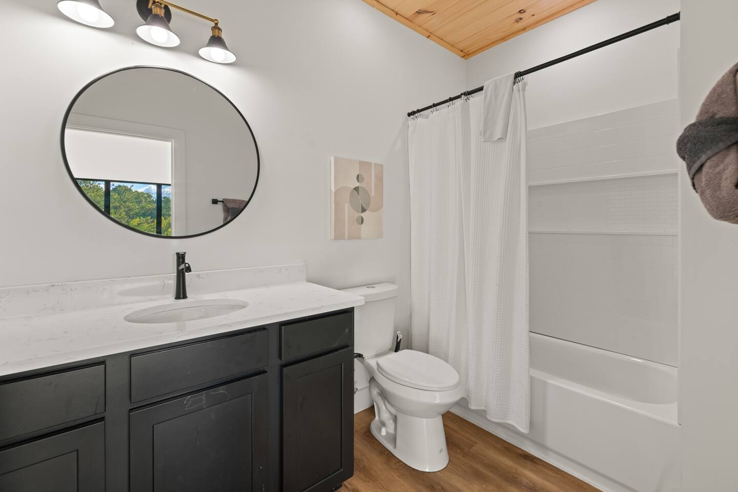 This modern cabin is fun for the whole family! Interested in a swim? A splash in the pool is always fun, but if you want to level it up for your kids- wait until they can have a movie night in the pool! Or maybe you want to relax outdoors? Kick back at the fire pitand tell campfire stories while roasting marshmallows, or take a soak in the hot tub as you enjoy the evening. Or maybe you just want to stay in?For a cozy time inside there is shuffleboard, loads of board games, and an arcade game!