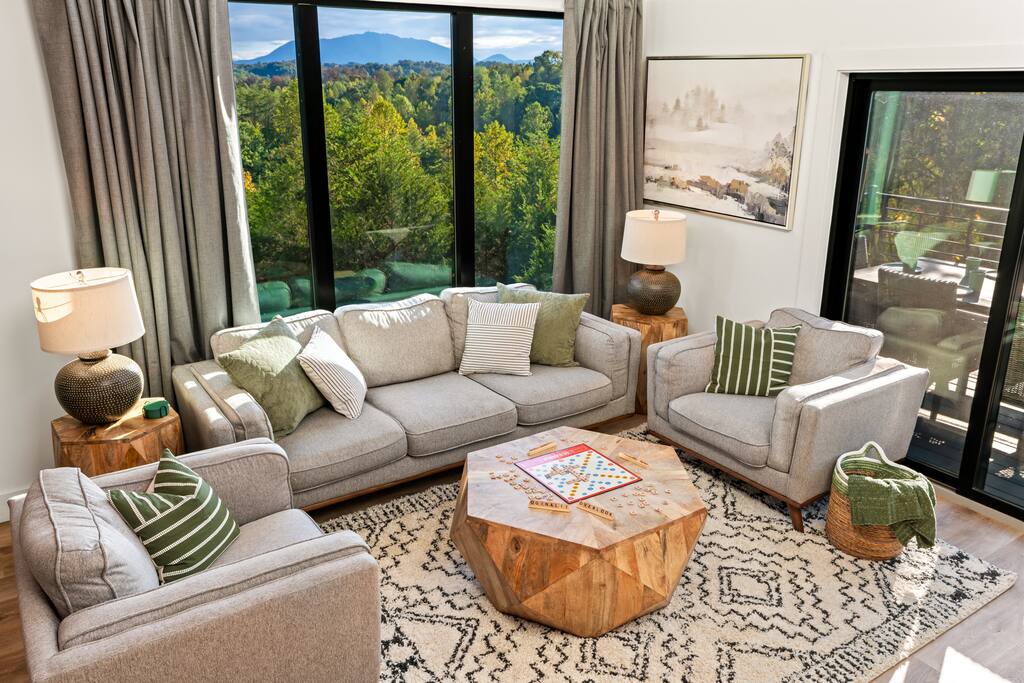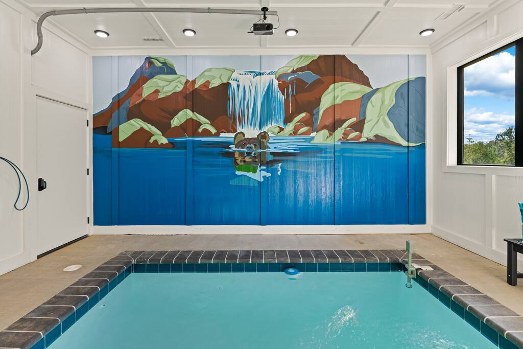 Welcome to Oginalii Overlook! Escape to the stunning Lodges at Reedmont, where luxury meets convenience in the heart of Sevierville, TN. Enjoy exclusive amenities, including a private indoor pool with projector tv for movie nights, hot tub, shuffleboard, outdoor fire pit and inviting lounge areas, all designed to elevate your experience. **Your Dream Cabin Awaits** As you arrive, you’ll find ample parking for 3-4 cars right outside your door. Step inside and be welcomed by a contemporary, open-concept layout that exudes comfort and style. The well-equipped kitchen is perfect for preparing family meals or late-night snacks, while the spacious living area, complete with a 65-inch Smart TV and electric fireplace, invites you to unwind. Oginalii Overlook features four bedrooms—1 King, 2 Queens, and 2 twin-over-bunk beds—paired with 4.5 bathrooms, ensuring everyone has space and privacy. With thoughtful design elements, you are assured to enjoy its character. **Unwind and Rejuvenate** Rainy days? No problem! Enjoy your very own heated indoor pool (maintained at a cozy 83-84 degrees) that is also equipped with a projection tv to enjoy a sporting event or movie while the kids splash around. Maybe the hot tub is more your jam, relax and let your cares float away. For some additional fun, head to the loft featuring shuffleboard overlooking beautiful mountain views or maybe a try at one of the plethora of board games. After a day of exploring nearby attractions like Soaky Mountain Water Park and Dollywood, retreat to your cabin and savor the tranquility of the mountains and enjoy a peaceful evening listening to the crackle of a campfire. MAIN FLOOR: Inviting open concept vacation home with a cozy atmosphere and plenty of amenities. ○ Well Stocked Kitchen + Dining Table + Island ○ Living Room with 65 in Smart TV ○ Electric fireplace ○ 1 bedroom with King Bed + Full Bathroom O 1/2 bath SECOND FLOOR: ○ Game room with Shuffleboard, board games & a T.V. ○ 2 bedrooms with Queen beds, 2 bathrooms BASEMENT: This is why you rented our cabin :) ○ Heated indoor pool (83-84 degrees) with Projection TV!! ○ Outdoor Firepit ○ Stackable washer & dryer ○ 6 person Hot Tub ○ 2 Twin Bunk Beds ○ Full Bathroom **Important Information** - Check-in: 4:00 PM | Check-out: 10:00 AM - Max occupancy: 10 (including children) - Age requirement: 25 years or older to book - No smoking, pets, or parties - No firewood is provided, there are many convenience stores nearby that sell bundles for your enjoyment Please note that there may be ongoing construction in the neighborhood during 2024, but work will be conducted within city-regulated hours. Treat yourself to a luxurious stay at The Lodges at Reedmont—you deserve it! Book now for an unforgettable experience in beautiful Eastern Tennessee!