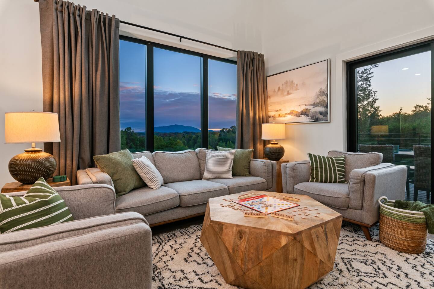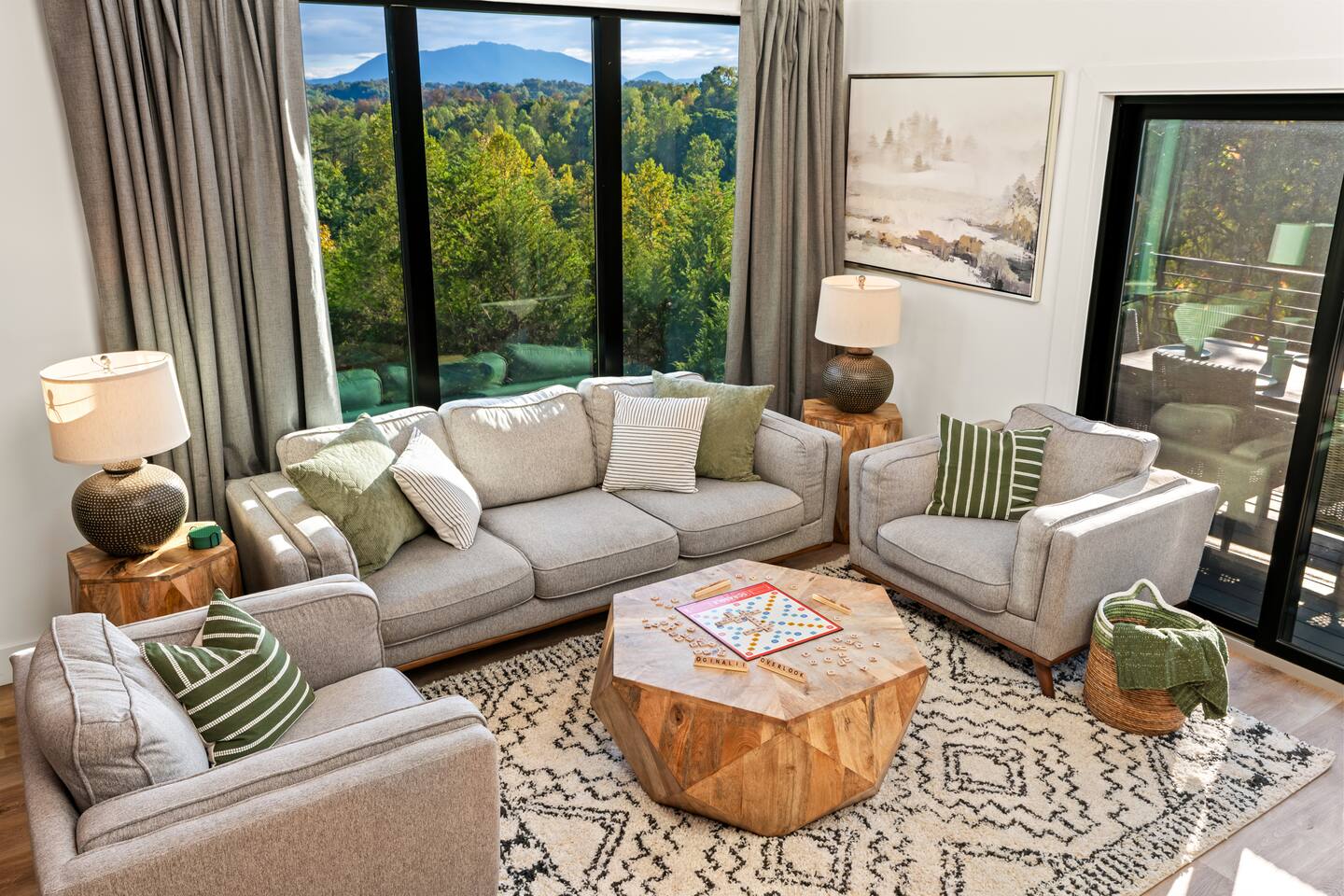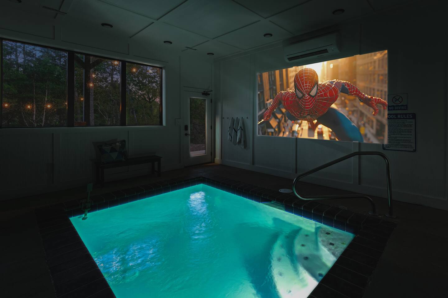 Welcome to Oginalii Overlook! Escape to the stunning Lodges at Reedmont, where luxury meets convenience in the heart of Sevierville, TN. Enjoy exclusive amenities, including a private indoor pool with projector tv for movie nights, hot tub, shuffleboard, outdoor fire pit and inviting lounge areas, all designed to elevate your experience. **Your Dream Cabin Awaits** As you arrive, you’ll find ample parking for 3-4 cars right outside your door. Step inside and be welcomed by a contemporary, open-concept layout that exudes comfort and style. The well-equipped kitchen is perfect for preparing family meals or late-night snacks, while the spacious living area, complete with a 65-inch Smart TV and electric fireplace, invites you to unwind. Oginalii Overlook features four bedrooms—1 King, 2 Queens, and 2 twin-over-bunk beds—paired with 4.5 bathrooms, ensuring everyone has space and privacy. With thoughtful design elements, you are assured to enjoy its character. **Unwind and Rejuvenate** Rainy days? No problem! Enjoy your very own heated indoor pool (maintained at a cozy 83-84 degrees) that is also equipped with a projection tv to enjoy a sporting event or movie while the kids splash around. Maybe the hot tub is more your jam, relax and let your cares float away. For some additional fun, head to the loft featuring shuffleboard overlooking beautiful mountain views or maybe a try at one of the plethora of board games. After a day of exploring nearby attractions like Soaky Mountain Water Park and Dollywood, retreat to your cabin and savor the tranquility of the mountains and enjoy a peaceful evening listening to the crackle of a campfire. MAIN FLOOR: Inviting open concept vacation home with a cozy atmosphere and plenty of amenities. ○ Well Stocked Kitchen + Dining Table + Island ○ Living Room with 65 in Smart TV ○ Electric fireplace ○ 1 bedroom with King Bed + Full Bathroom O 1/2 bath SECOND FLOOR: ○ Game room with Shuffleboard, board games & a T.V. ○ 2 bedrooms with Queen beds, 2 bathrooms BASEMENT: This is why you rented our cabin :) ○ Heated indoor pool (83-84 degrees) with Projection TV!! ○ Outdoor Firepit ○ Stackable washer & dryer ○ 6 person Hot Tub ○ 2 Twin Bunk Beds ○ Full Bathroom **Important Information** - Check-in: 4:00 PM | Check-out: 10:00 AM - Max occupancy: 10 (including children) - No smoking, pets, or parties - No firewood is provided, there are many convenience stores nearby that sell bundles for your enjoyment Please note that there may be ongoing construction in the neighborhood during 2024, but work will be conducted within city-regulated hours. Treat yourself to a luxurious stay at The Lodges at Reedmont—you deserve it! Book now for an unforgettable experience in beautiful Eastern Tennessee!